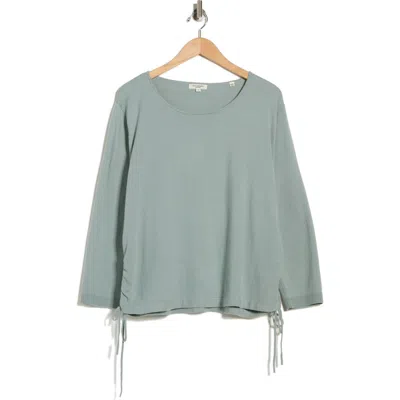 Lounge or layer with this solid pullover sweater knit from soft, lightweight yarns and framed by cinching side ties. 25" length Ballet neck Long sleeves Drawstring ruching 51% rayon, 28% polyester, 21% nylon Machine wash, dry flat Imported