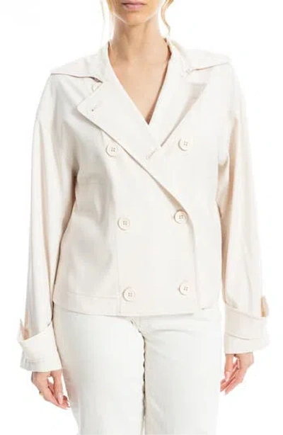 Introducing the Max Studio Double Breasted Short Jacket, a chic and stylish addition to your wardrobe. This jacket in new ivory features a double breasted fit and a button front closure. Made with 98% polyester and 2% spandex, this jacket is both fashionable and comfortable. With a length of approximately 22.75 inches from shoulder to hem, it is the perfect piece to layer over any outfit. Machine washable and imported, this jacket embodies the cool and casual style that Max Studio is known for.