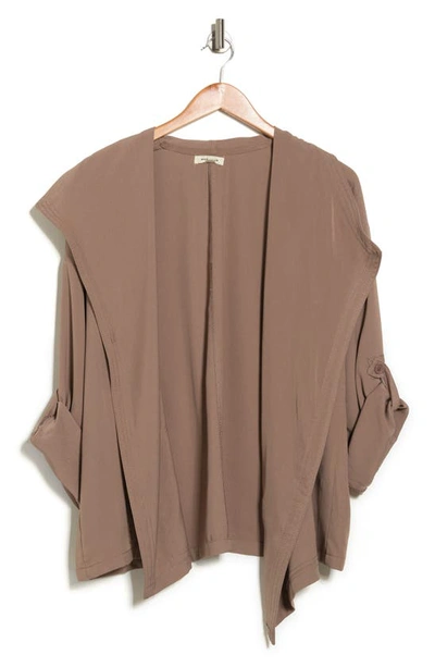 MAX STUDIO Draped Open Front Twill Jacket In Mocha