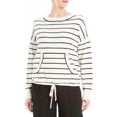 MAX STUDIO Drawstring Hem Pullover Sweater In Ivory/black