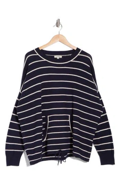 MAX STUDIO Drawstring Sweater In Dark Navy/off White Stripe