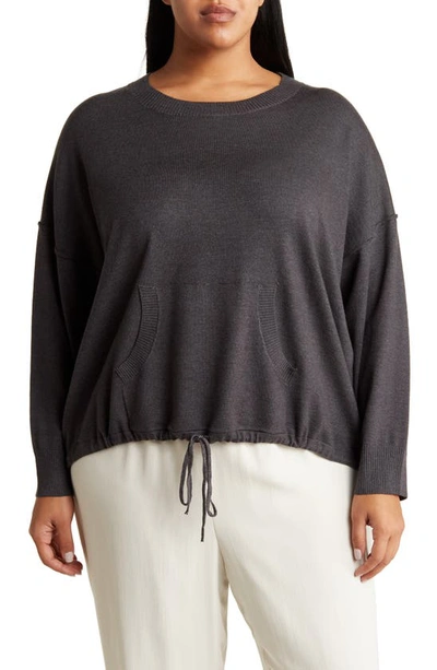 MAX STUDIO Drawstring Sweater In Heather Charcoal