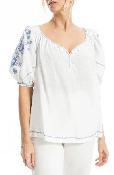 MAX STUDIO Embroidered Puff Sleeve Top In Multi
