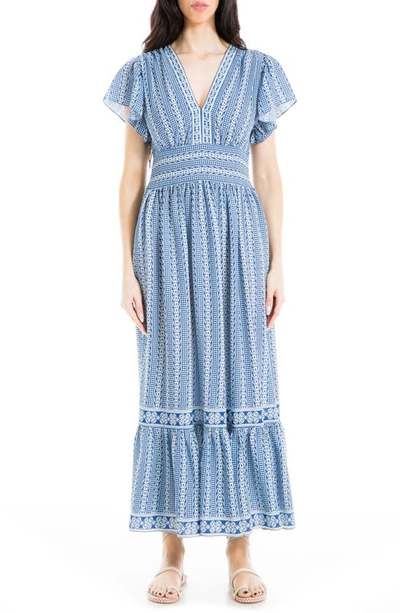 MAX STUDIO Flutter Sleeve Floral Tiered Maxi Dress In Cblttlpr-cobalt Tulip Rows