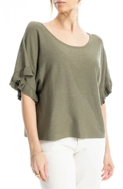 MAX STUDIO Flutter Sleeve Sweater In Green