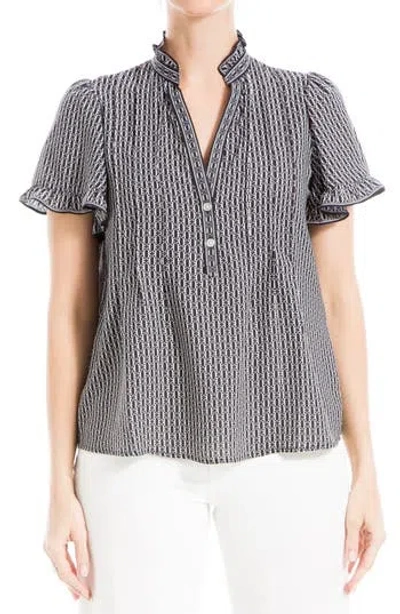 MAX STUDIO Flutter Sleeve Top In Black/cream Buckle Chain