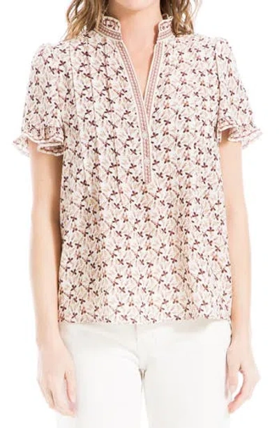 MAX STUDIO Flutter Sleeve Top In Blush/mocha Leaves