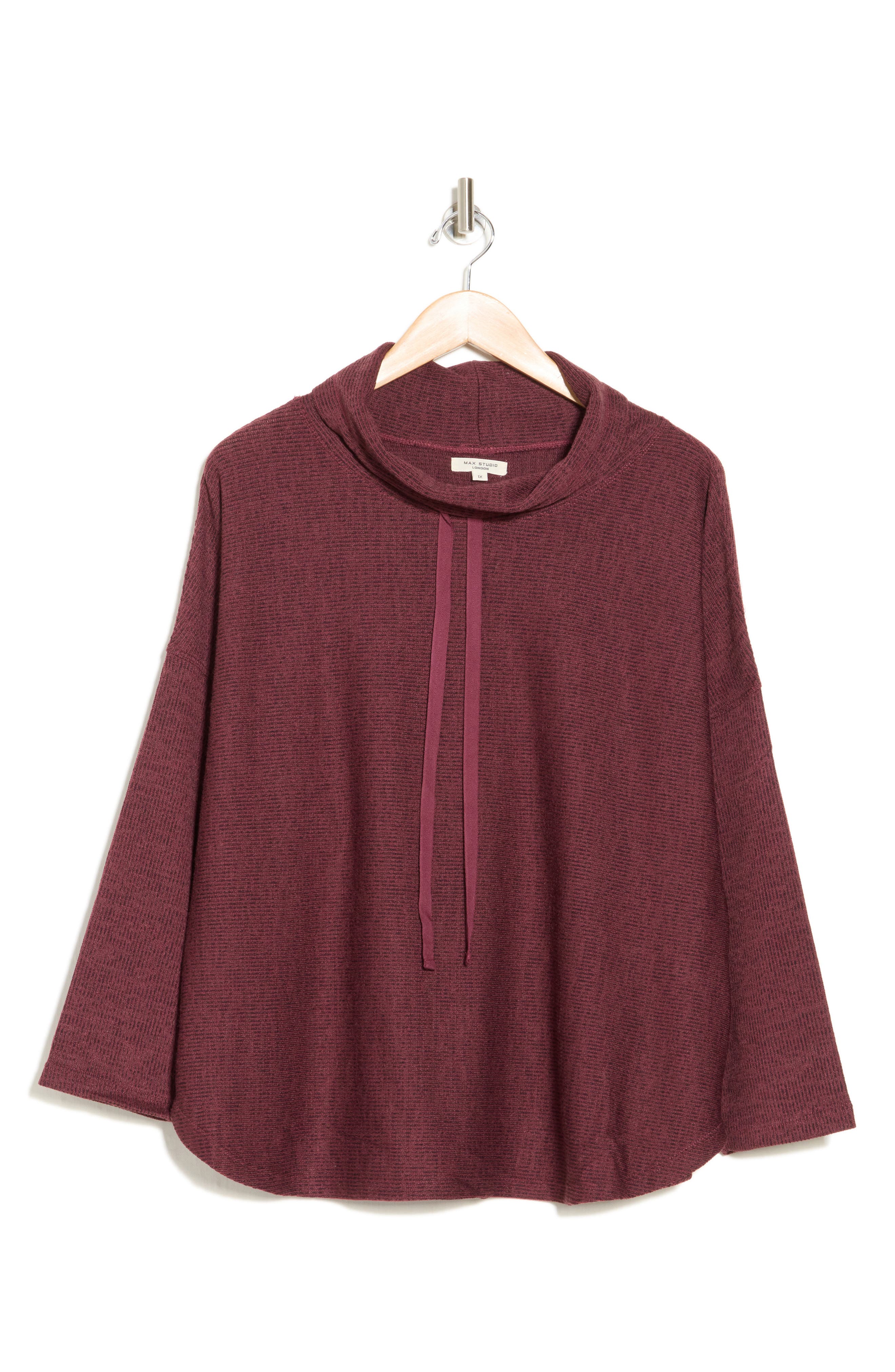 A drapey funnel neckline and dropped shoulders bring relaxed comfort to this pullover that's best suited for casual days off. 26 1/2" length Funnel neck Long sleeves 88% polyester, 9% viscose, 3% spandex Hand wash, dry flat Imported