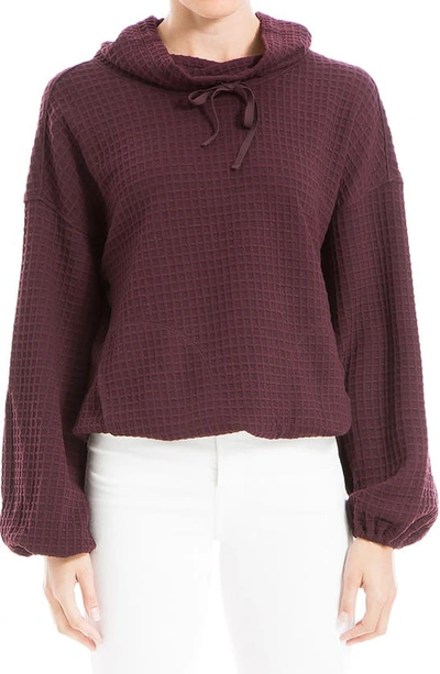 MAX STUDIO Funnel Neck Waffle Knit Pullover In Bordeaux