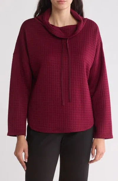 MAX STUDIO Funnel Neck Waffle Knit Pullover In Oxblood