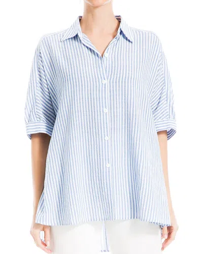 Introducing the Max Studio High-Low Oversized Shirt, the epitome of cool, casual style. This white and denim stripe shirt features a high-low design and is approximately 26.25 inches from shoulder to hem. The button front adds a touch of elegance to this laid-back piece. Made from 55% rayon and 45% cotton, this shirt is easy to care for with a simple hand wash. Imported and perfect for any occasion, this Max Studio shirt is a must-have addition to your wardrobe.