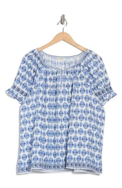 A dainty front keyhole and ruffled sleeves frame this lightweight top cut from a breathable cotton blend. 27" length Front keyhole with button-and-loop closure Crewneck Short sleeves 60% cotton, 40% rayon Machine wash, line dry Imported