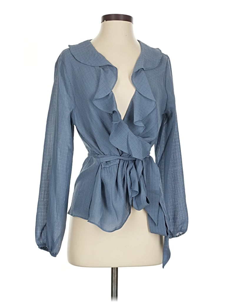 Max Studio Long Sleeve Blouse, Size: Small. Item Details: Blue, Tie Neck, Long Sleeves, Ruffles, Women's Tops, 100% Polyester