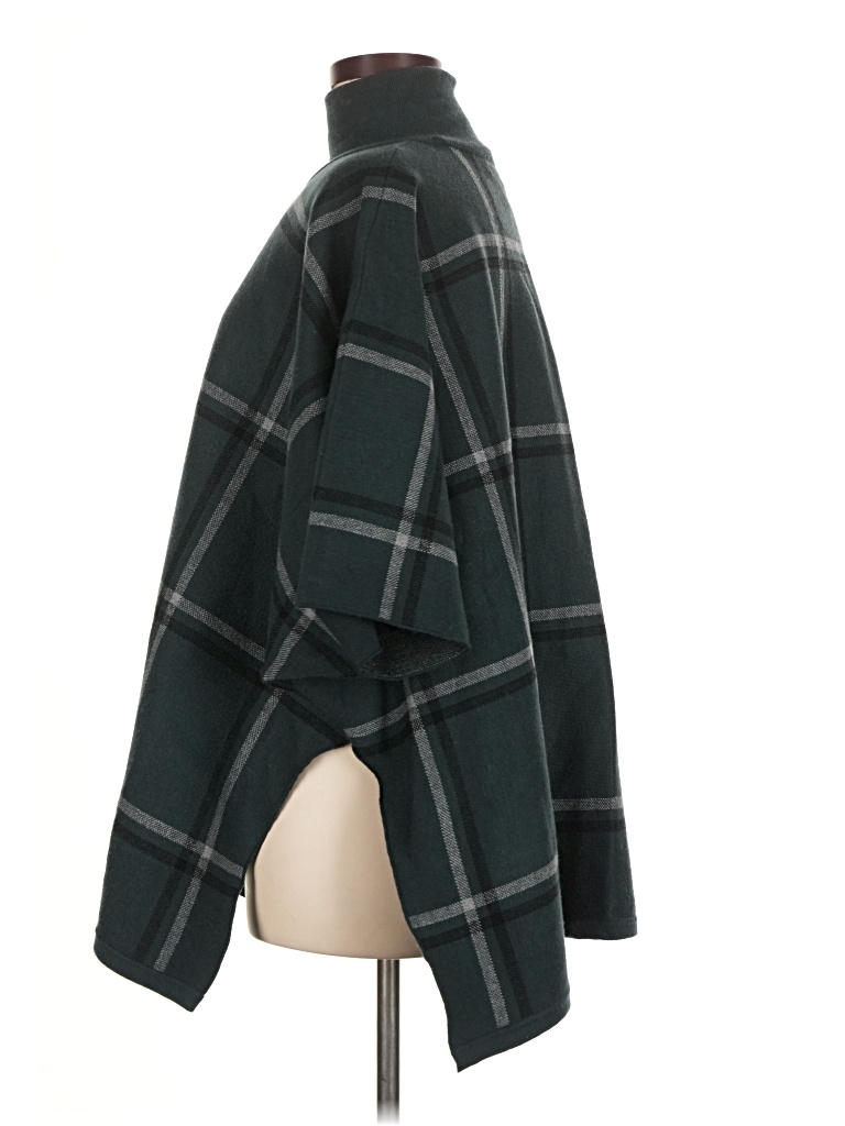 Max Studio Poncho, Size: One Size. Item Details: Green, Plaid Pattern, Collared Neckline, Short Sleeve, Flannel, Women's Sweaters & Sweatshirts, Rayon/Polyester/Nylon