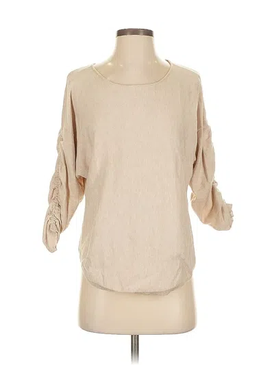 Max Studio Pullover Sweater, Size: X-Small. Item Details: Tan, Cold Shoulder Neckline, 3/4 Sleeve, Ruched, Women's Tops, Rayon/Polyester/Nylon