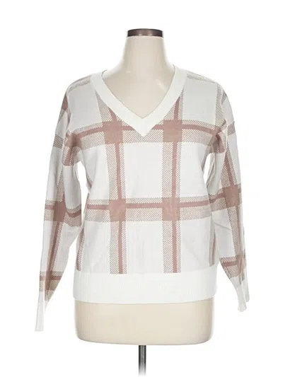 Max Studio Pullover Sweater, Size: X-Large. Item Details: White, Plaid Pattern, V Neck, 3/4 Sleeve, Flannel, Women's Tops