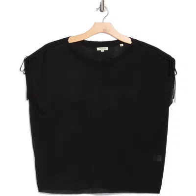 MAX STUDIO Ruched Shoulder Cap Sleeve Sweater In Black