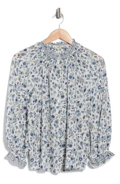 A ruffle collar and long puff sleeves frame this chic button-up top covered in a blooming floral print. 24 5/8" length (size Small) Front button closure Stand collar Long sleeves 97% polyester, 3% spandex Machine wash, line dry Imported