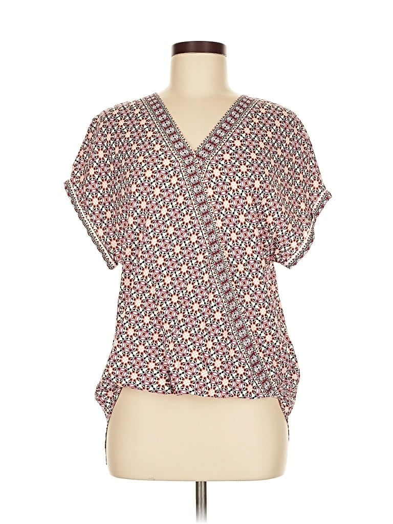 Max Studio Short Sleeve Blouse, Size: Medium. Item Details: Red, V Neck, Women's Tops, 100% Rayon