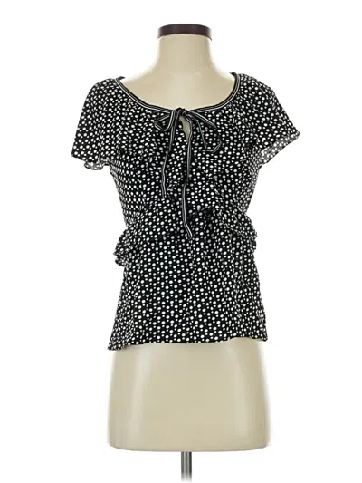 Max Studio Short Sleeve T Shirt, Size: Small. Item Details: Black, Polka Dots Pattern, Tie Neck, Short Sleeves, Peplum, Women's Tops, Polyester/Spandex