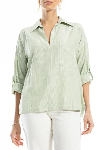 MAX STUDIO Stripe Collared Top In Green