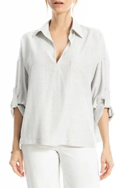 MAX STUDIO Stripe Collared Top In White