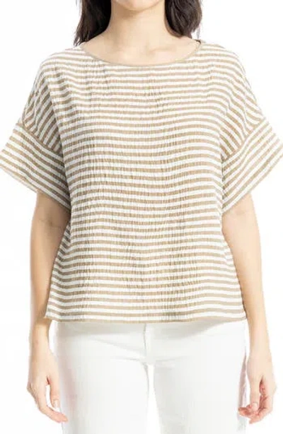 MAX STUDIO Stripe Crinkle Drop Shoulder Top In Neutral