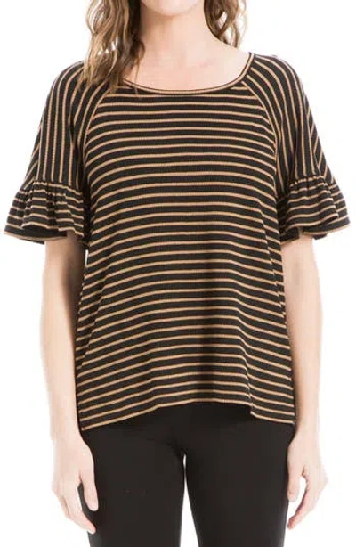 MAX STUDIO Stripe Flutter Sleeve Top In Black