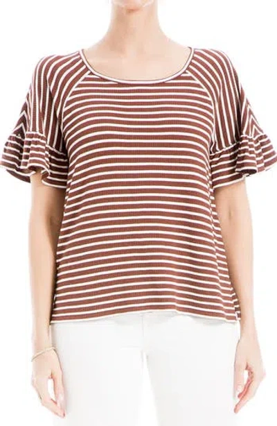MAX STUDIO Stripe Flutter Sleeve Top In Chestnut/ivory Stripe