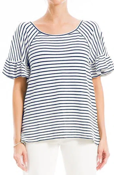 Stripe Flutter Sleeve Top In White/navy Stripe