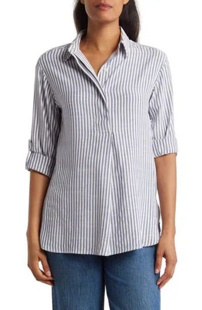 MAX STUDIO Stripe Oversize Long Sleeve Button-up Tunic In Indigo/black Framed Stripe
