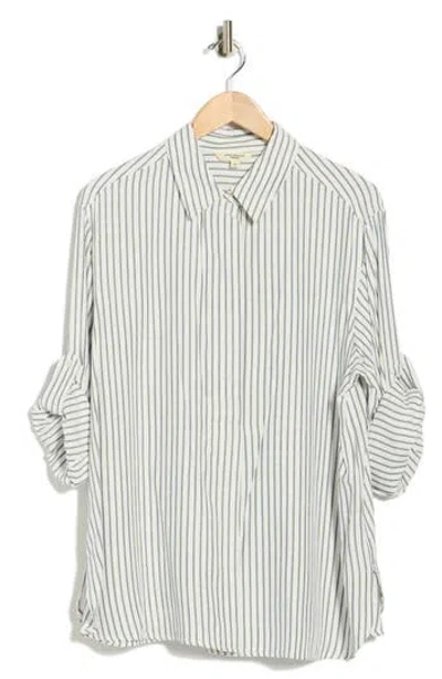 A clean stripe pattern adds smart appeal to this popover tunic styled with a spread collar and quarter-button placket. 29" length (size Small) Spread collar Long sleeves with adjustable button cuffs 55% polyester 45% rayon Machine wash, line dry Imported Model stats: 5'10", 32" bust, 25" waist, 36" hip. Model is wearing size Small.