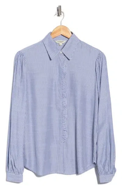 Stripe Ruffle Front Button-up Shirt In Blue