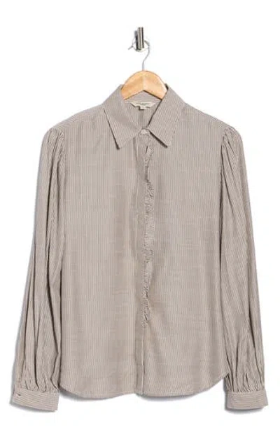 Stripe Ruffle Front Button-up Shirt In Neutral