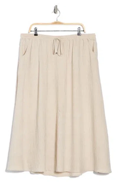 MAX STUDIO Textured Drawstring Skirt In Ht Oatmeal