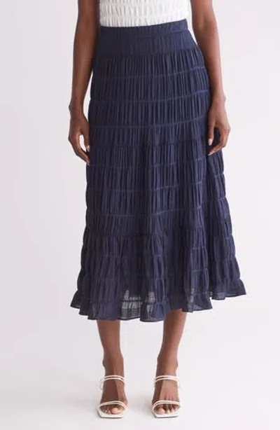 MAX STUDIO Textured Midi Skirt In Navy-navy