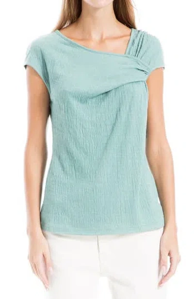 A cap-sleeve top with a textured finish features a side gather for on-trend appeal that can be worn casually or dressed up. 25" length (size Small) Asymmetric neck Cap sleeves 70% polyester, 29% rayon, 1% spandex Machine wash, dry flat Imported Model stats: 5'10" height, 32" bust, 25" waist, 36" hip. Model is wearing size Small.