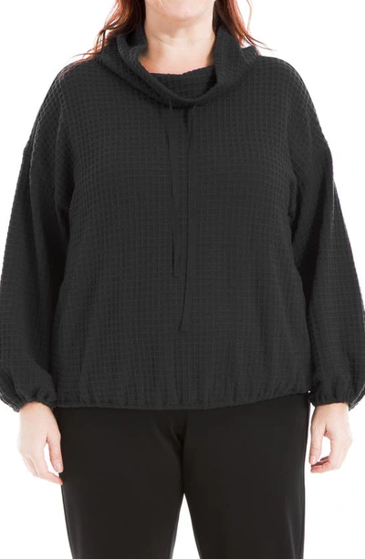 MAX STUDIO Waffle Knit Long Sleeve Pullover In Black