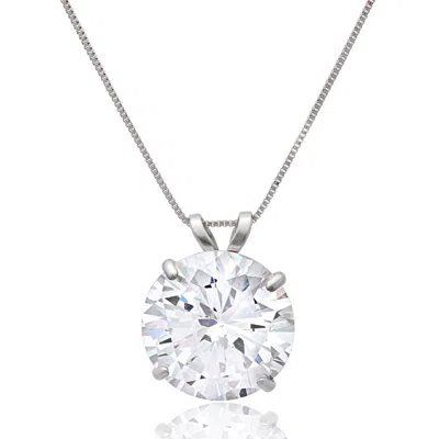 14k Gold 10mm Solitaire Cubic Zirconia Pendant Necklace With 18 Inch Box Chain In Metallic