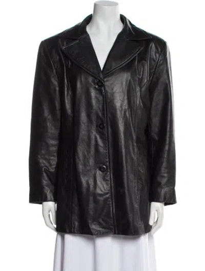 Maxima Leather Evening Jacket Black Pointed Collar Slit Pockets & Button Closure Fit: Jackets by Maxima typically fit true to size. | Maxima Leather Evening Jacket in Black, Women's XL