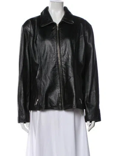 Maxima Leather Jacket Black Pointed Collar Slit Pockets & Zip Closure Fit: Jackets by Maxima typically fit true to size. | Maxima Leather Jacket in Black, Women's XL