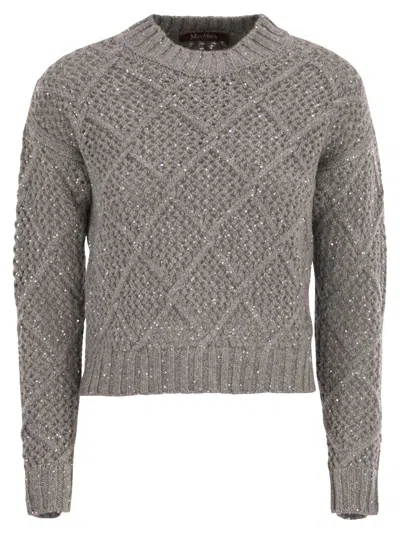 MAXMARA STUDIO Ellade Boxy Wool And Cashmere Jumper With Sequins In Gray