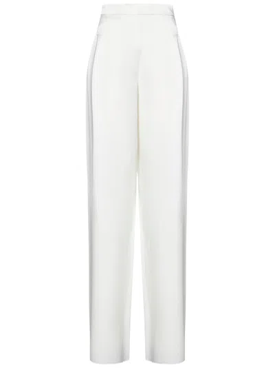 side zip closurehigh waist; front dartsinserted pockets on the sidesironed central pleatwide leg cutcolor: white71% acetate, 29% viscosemade in italy