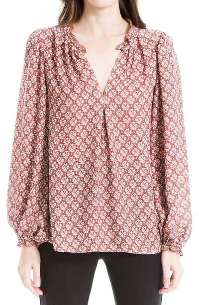 MAXSTUDIO Max Studio Printed Crepe Long Sleeve Top In Mauve Four Leaf Clover