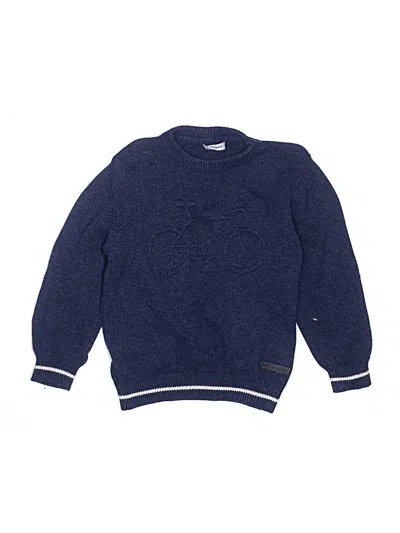 Mayoral Pullover Sweater, Size: 4. Item Details: Blue, Solid Pattern, Collared Neckline, Long Sleeve, Shearling, Boys Tops, Cotton/Polyamide/Wool