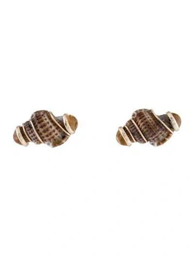 Pre-owned 14k Shell & Citrine Stud Earrings In Multi
