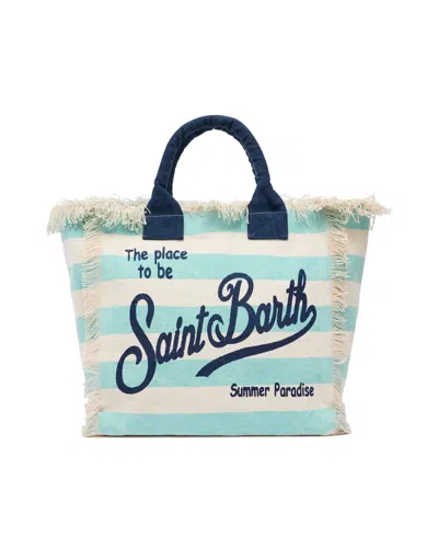 MC2 SAINT BARTH Borsa A Spalla Vanity In Canvas Di Cotone A Righe Verde Acqua