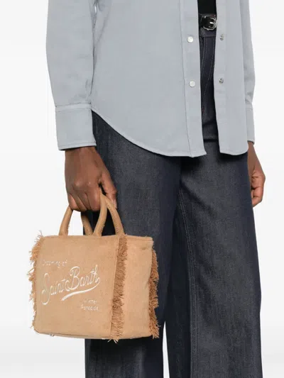 MC2 SAINT BARTH Mini Vanity Fringed Embroidered Tote Bag In Brown