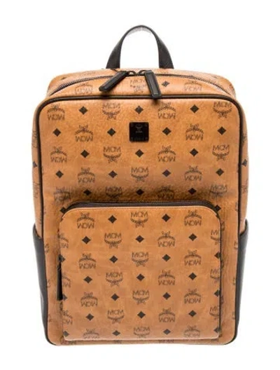 MCM Backpack Brown Printed Tonal Hardware Handle & Dual Adjustable Shoulder Straps Suede Lining Zip Closure at Top | MCM Backpack w/ Tags in Brown
