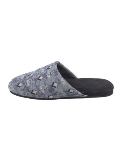 MCM Canvas Mules Blue Printed Suede Trim Semi-Pointed Toes Size not listed, estimated from measurements. | MCM Canvas Printed Mules in Blue, Women's 10.5